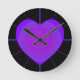 B&W Purple Hearts Beating Round Clock