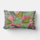 Black and White Striped Pink Tropical Lumbar Throw Pillow