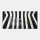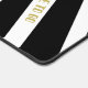 Introducing this stylish Black and White Striped Desk Mat, featuring three eye-catching characters - a coffee maker, teapot, and glass pitcher. The entire graphic design is presented in black and white, creating a timeless and sophisticated look. The company name and additional text to personalised are beautifully accentuated in Vegas Gold, adding a touch of glamour to the overall aesthetic.