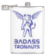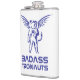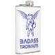 The flask itself is fine. It’s a cheap flask, obviously bought in bulk, however am prepared to overlook that. Given that it is a personalized item, I would have liked to have seen gift boxing instead of the generic packaging. Terrible printing, and/or quality. It’s a cheap, tacky vinyl. It is not cut straight and is also applied in a way that it is overhanging the bottom, causing the glue to catch on items and it will eventually roll and tear, damaging the wrap.