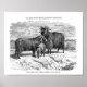 Customise this sheep poster with your own words, leave as is or remove the text for unique artwork. This vintage poster depicts a family of three sheep standing together on a grassy hillside, with a beautiful sky and rolling hills in the background. The black and white illustration with intricate details give the poster a timeless and charming quality.