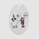 Funny and original Christmas cartoon of a sheep and humbug candy with text "Baa...humbug" on Christmas ornament with snowflake pattern on reverse.
