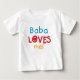 Baba Loves Me T-shirts, cards, stickers, bodysuits bags, and more with colourful red, yellow, and blue text and heart design. These Baba Loves me apparel and gift items will make baba smile!