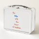 This is a standard metal lunchbox that appears to work just fine. We designed this box ourselves with an uploaded photo and custom text on the front and back. It looks absolutely beautiful except the front of the lunchbox is not centered like it shows in the photo. The print borders don't align with the inset flat part of the box where the preview photo online showed it perfectly centered in there. The back looks nice and centered though.