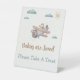 Featuring a charming travel-themed design with adorable aeroplane illustrations and a vintage map background, this sign is the perfect addition to any baby shower. Place it on a pedestal or tabletop to add a touch of elegance and sophistication to your event.