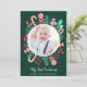 This first Christmas baby keepsake Christmas card features hand painted watercolor foliage, peppermint candy canes and candy. This card is ideal for a family who has a new baby or are first time parents and would like to celebrate that this Christmas season. On the front you can add your own photo and change the text and on the back you can write your own Christmas message. See the whole matching collection.