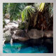 Pictured by his pond surrounded by big palm trees a baboon enjoys his serenity