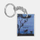 A watercolor painting of a family of baboons in the evening adorns this customisable keychain!