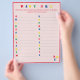 Design features a pale pink background to a bright red border and text. "BABY ABC" is displayed at top in bright colours. Directions are customisable for a more personalised touch, if desired. Guests are asked to list baby items beginning with the letter shown. Also available in blue. Designed to coordinate with the "ABC Baby Shower and Nursery Collection."