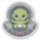 This cute sticker features a baby alien sitting in a cosy UFO-shaped seat with a cute pacifier in its mouth and wearing a diaper. The baby alien has big, sparkling eyes, giving it an irresistibly charming look, and its green skin adds to its outer-space cuteness. The UFO seat has small, colourful lights around its rim, adding a fun sci-fi touch. This whimsical design is perfect for anyone who loves space, aliens, or just really cute stickers with a cosmic twist.