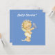 A cute blonde angel baby with curly hair and a blue butterfly. Perfect for a baby shower with a space for your details on the back of the invitation.