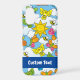 Seamless background pattern with baby animal cartoons. Snails, butterflies, birds, bees, sun and clouds. Custom text.