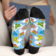 Baby animal cartoons. Snails, butterflies, birds, bees, sun and clouds. Seamless pattern. Custom background colour. Custom top stripe colour. Custom text on each sock.