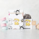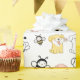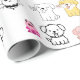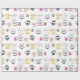 Cute animals wrapping paper with puppies, dogs, bees and frogs is designed in cartoon style for wrapping birthday gifts for toddlers, babies, boys, girls, or even a baby shower. Features happy animals on a white background.