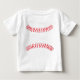 A unique t-shirt design for baseball babies, with big red seams printed on both sides. There's a custom text box on the front where you can type in anything you like - the baby's name, team name, etc. Makes a sweet baby shower gift during baseball season!