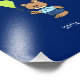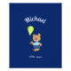 Photo print with cute baby bear and party balloon on dark blue background