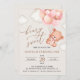 Invite friends and family in style and set the tone for your special day with this charming birthday invitation. Design features teddy bear with pink balloons on beige background.
