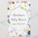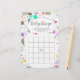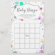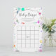This baby shower game card features a script modern font on multicolor dots background, perfect for a baby boy, baby girl or a surprise! Use this card for your gender reveal party!