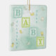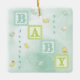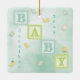 Sweet B-A-B-Y Blocks with little tweety birds flying around. Personalise with the name and year and your all set. You have an adorable non traditional Christmas ornament. Makes a great baby shower gift too.
