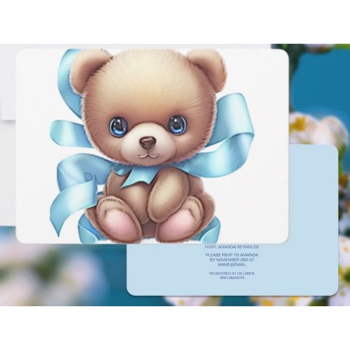 Here is a special way to announce your baby's birth. Send a captivating announcement to family and friends. Teddy Bear Blue design on the front with your special announcement of the birth along with your photo on the back. Use the template to personalise.