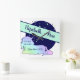 Baby Birth Announcement Cute Rainbow Unicorn Ombre Square Wall Clock