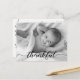 Personalised with baby's photo on the front and special message on the back. This design uses the word "Thankful" in an elegant script handlettering style font for a touch of sophistication. Express your excitement in announcing the birth of your child and send your gratitude at the same time.