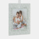 Baby birth stats photo ornament with delicate white snowflakes on a soft green background. The photo template is ready for you to add your baby photo, which is framed with your newborn birth stats. If you have any problems with placement, try cropping your pic to a square and re-uploading