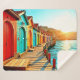 Step into a vibrant coastal dream where a dazzling boardwalk guides you towards the shimmering sea. This AI-crafted masterpiece, meticulously enhanced by a skilled artist, captures the breathtaking beauty of a sun-kissed harbour. Each brightly painted boathouse stands as a beacon of joy, reflecting the warm, inviting glow of the setting sun. Lose yourself in this picturesque scene, where tranquil waters and brilliant colours converge to create a moment of serene bliss and creative wonder.