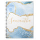 Baby Blue and Faux Gold Glitter Marble Agate Notebook