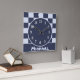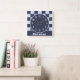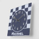Do you know a little guy who has recently joined your circle of friends and family? This baby nursery wall clock features a square pattern quilt design in alternating dark and light blue colours and is personalised with the special little guy's name. A solid dark blue banner at the bottom displays the name which can quickly be personalised.