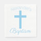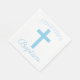 These Baptism celebration napkins feature a white background with a soft, baby blue coloured cross in the centre. A sample baby boy name is printed at the the top, and the word "Baptism" is printed at the bottom in matching baby blue font. You can personalise the napkins to include your own custom name or message.