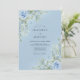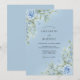 This design features a serene baby blue backdrop accented by delicate watercolor floral sprays. Soft blue blossoms and sage green willow leaves create an airy, romantic mood perfect for a seasonal event. The painterly style highlights a tranquil and elegant aesthetic.