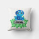 This is an adorable baby pillow for a baby boy with an illustration of a baby blue dinosaur sitting on a rock. This would make a great decoration for a nursery or kid's room and to make this even more special, it can be personalised by changing the name on it.