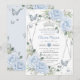 Baby Blue Floral Butterflies Silver Quinceanera Invitation