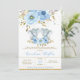 Baby Blue Floral Elephant Twin Boys Baby Shower Invitation