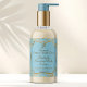 A product label featuring a baby blue damask pattern in the background. Has space for your logo and website.