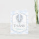 Baby Blue Hot Air Balloon Silver Glitter Thank You Card