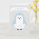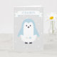 Cute baby blue penguin in a diaper card designed by Aubergine and Purple to send your congratulations and well wishes to the new parents of a newborn baby boy.