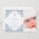 Prince baptism invitation with beautiful diamond crown and elegant script on a baby blue and white swirl background. This elegant blue prince baptism invitation is easily customised for your event by simply adding your photo and event details in the font style and colour, and wording of your choice. This is a printed design with no real diamonds, glitter, etc.
