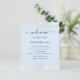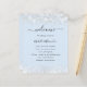A baby blue background decorated with confetti, sparkles. Personalise and add your names and wedding details. Black coloured letters. If you have more text it's possible to reduce the line space.