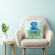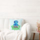 This is an adorable baby pillow for a baby boy with an illustration of a baby blue dinosaur sitting on a rock. This would make a great decoration for a nursery or kid's room and to make this even more special, it can be personalised by changing the name on it.