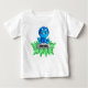 This is an adorable baby T-Shirt for a boy with an illustration of a baby blue dinosaur sitting on a rock. This would make a wonderful gift, and to make this even more special, it can be personalised by changing the name on the T-Shirt.