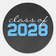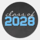 Baby Blue and White Chalkboard Graduation Circle Stickers - Dark Chalkboard