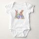 Baby bodysuit with sweet watercolor bunnies and their easter egg. Option with white underlay is best.