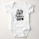 Celebrate a special milestone with this adorable "It's My First Father's Day" baby bodysuit. Crafted from soft, breatheable fabric, this infant jumpsuit is perfect for commemorating a new dad's first Father's Day. It makes a memorable gift for baby showers, Father's Day, or just to show off your little one's special message. Designed for comfort and easy changes with convenient snap closures.