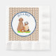 Brown and Blue personalised boy's baby shower napkins with a baby boy sitting next to a dog with a baseball theme.