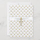 Beautiful baby boy in his christening suit and gold cross necklace sleeping on a gold pillow. Invitation background is white tufting with gold diamonds. Back is adorned with ribbon & cross.
