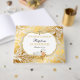 Beautiful baby boy in his christening suit and gold cross necklace sleeping on a gold pillow. Background is gold with silver scroll work and cross embellishment. Back is adorned with ribbon and cross.