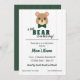 Got a baby boy on the way? Destined to be a bear? It's the perfect theme for a baby shower! This cute invitation is done in green and yellow gold with an adorable baby boy bear - complete with bowtie - at the top. Personalise with your party details, including the names of the friends hosting the event. Back side is green wood to match the background of the front.