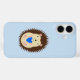 This awesome iPhone case features a digital art image of a cute brown spiky baby boy hedgehog with brown eyelids and a big smile, holding a blue heart. A great design for celebrating a baby Boy.